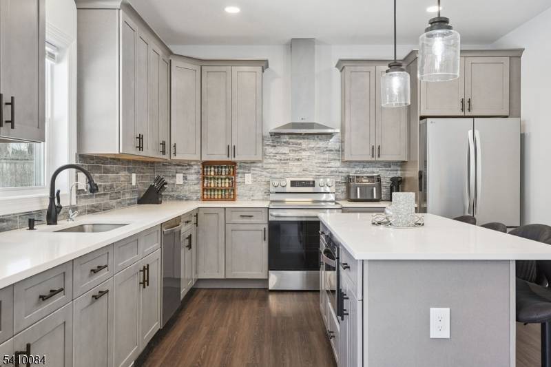 Hopatcong voted #7 safest township in NJ. NEW CONSTRUCTION with peace of mind! Built in 2024, this beautifully custom-built Colonial offers timeless design, modern finishes, and the added value of an existing new home warranty for confident ownership. A dramatic two-story entry welcomes you into a thoughtfully designed layout featuring 9-foot ceilings on the first floor, luxury vinyl flooring throughout, recessed LED lighting, and central air. The well-appointed eat-in gourmet kitchen is an entertainer's dream, showcasing quartz countertops, a large center island, stainless steel appliances that include a microwave drawer oven, and a stylish tiled backsplash perfect for hosting or everyday living. The spacious primary suite includes a spa-inspired stall bath with a separate water closet, double sinks, a stall shower, and a walk-in closet. A highly desirable second-floor laundry room adds everyday convenience. A water infiltration system has been installed. An unfinished basement can easily be finished to become a recreation space for a game room, home offie or workout gym. A spacious one-car garage offers high ceilings for plenty of storage options and also includes an EV charger for your convenience. The gem is located within close proximity to schools, recreation and less than 10 minutes away from Lake Hopatcong and NJ Transit train to NYC. If you're ready for a lifestyle change and love mountain views, then this could be the home for you.